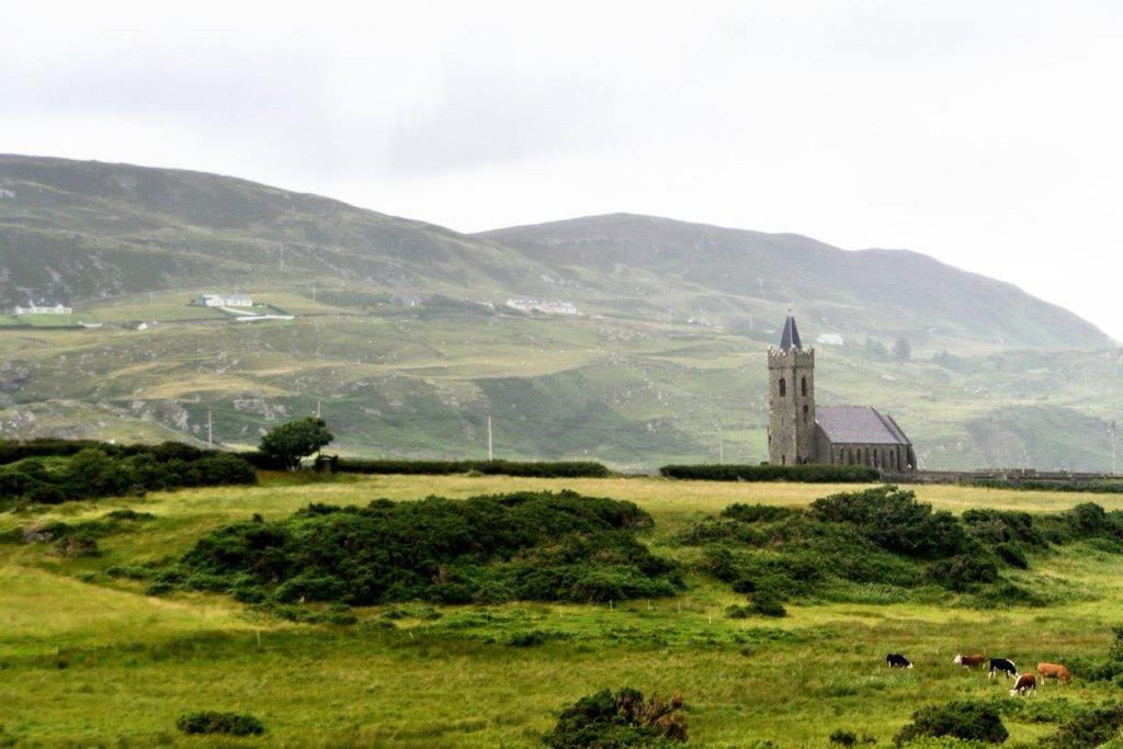 So, unsere Besichtigungszeit war abgelaufen und unser Fahrer zeigte uns während einer kurzen Rundfahrt die Kirche von Glencolumbkille, St Columba.