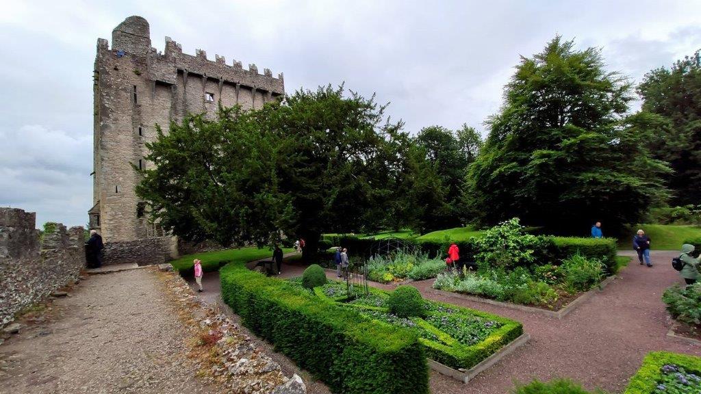 Auf dem Weg zum Einlass begleiteten uns viel bunte Blumenampeln – eine Augenweide. Die hatten wir auch einige Minuten später, als wir am Rande des 24 ha großen Parks standen. Wir staunten bestimmt so wie illustre Vorgänger, nämlich Winston Churchill, Ronald Reagan, Walter Scott, Stan Laurel, Mick Jagger und viele andere Prominente. Warum besuchten sie Blarney Castle? Die Antwort kommt …