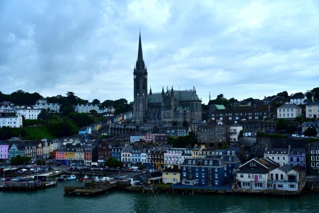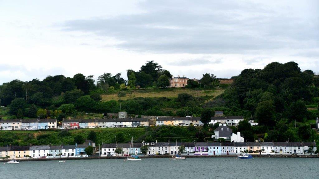 Der alte Hafen mit vor sich in dümpelnden Fischerbooten. Das Titanic-Museum. Die verschiedenen, direkt am Wasser liegenden Restaurants. Dahinter in zweiter Reihe – und zwar an der Hauptdurchgangsstraße befindlich – verschiedene munter farbige Geschäftshäuser. Alles überragend die St. Colman's Cathedral. Sehr schöne bunte Häuser links von der Kathedrale am West View, die sogenannten Deck of Cards. 23 Reihenhäuser nebeneinander. Alle nahezu gleich aussehend – sozialer Wohnungsbau? Alle aufgrund der Hanglage auf verschiedenen Ebenen. Attraktiv allein deshalb, da sie sich farblich von den jeweiligen Nachbarhäusern unterschieden.