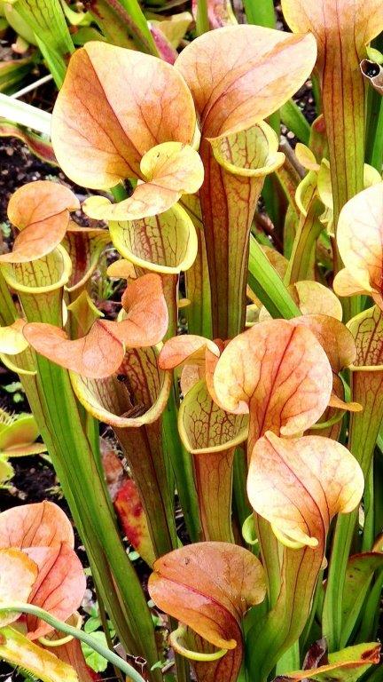 Zunächst interessierte uns der Giftgarten. Fast 100 verschiedene Giftpflanzen wie Nieswurz, blauer Eisenhut, roter Fingerhut, hoher Rittersporn, Rhododendron, gefleckter Schierling (War da nicht etwas mit dem Schierlingsbecher von Sokrates? Aber in einer anderen Welt und Gegend!), … warteten auf Abnehmer. Meine bessere Hälfte beobachtete mich sehr genau. Ein Anlass, auch sie nicht aus den Augen zu lassen … Besonders angetan hatte uns die Farbenpracht fleischfressender Pflanzen.