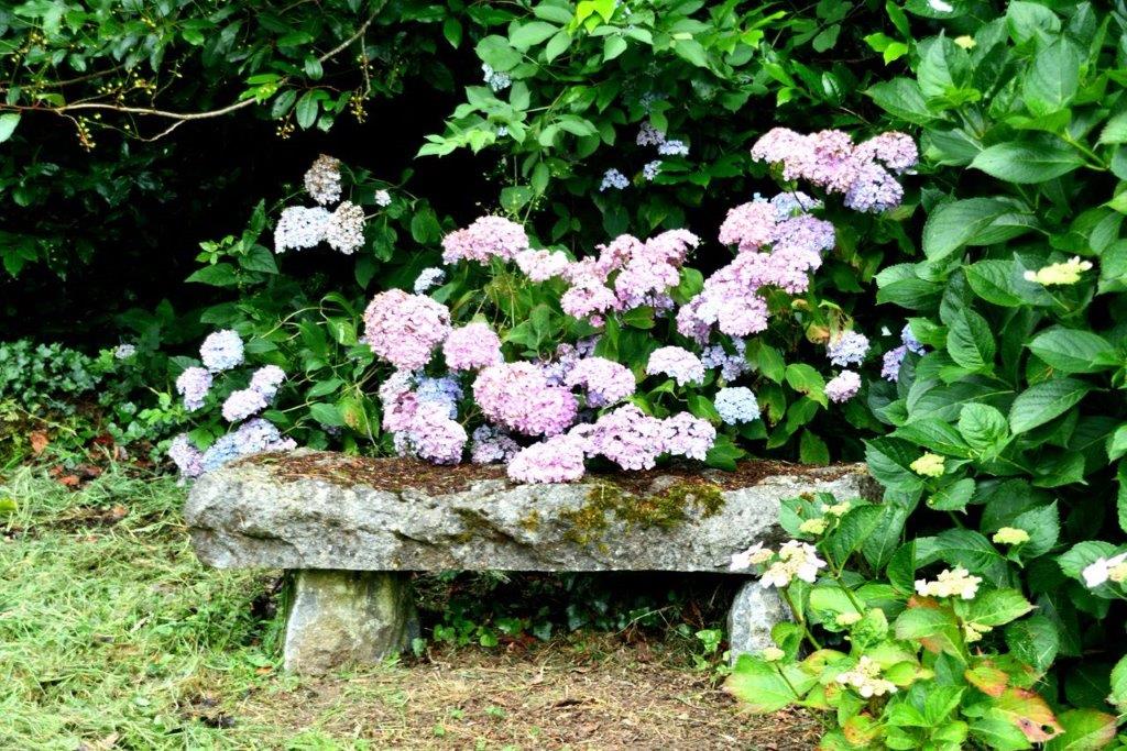 Nun ja, zum längeren Verweilen lud die Steinbank nicht ein, zumal sich die Hortensienblüten auf ihr breit gemacht hatten.