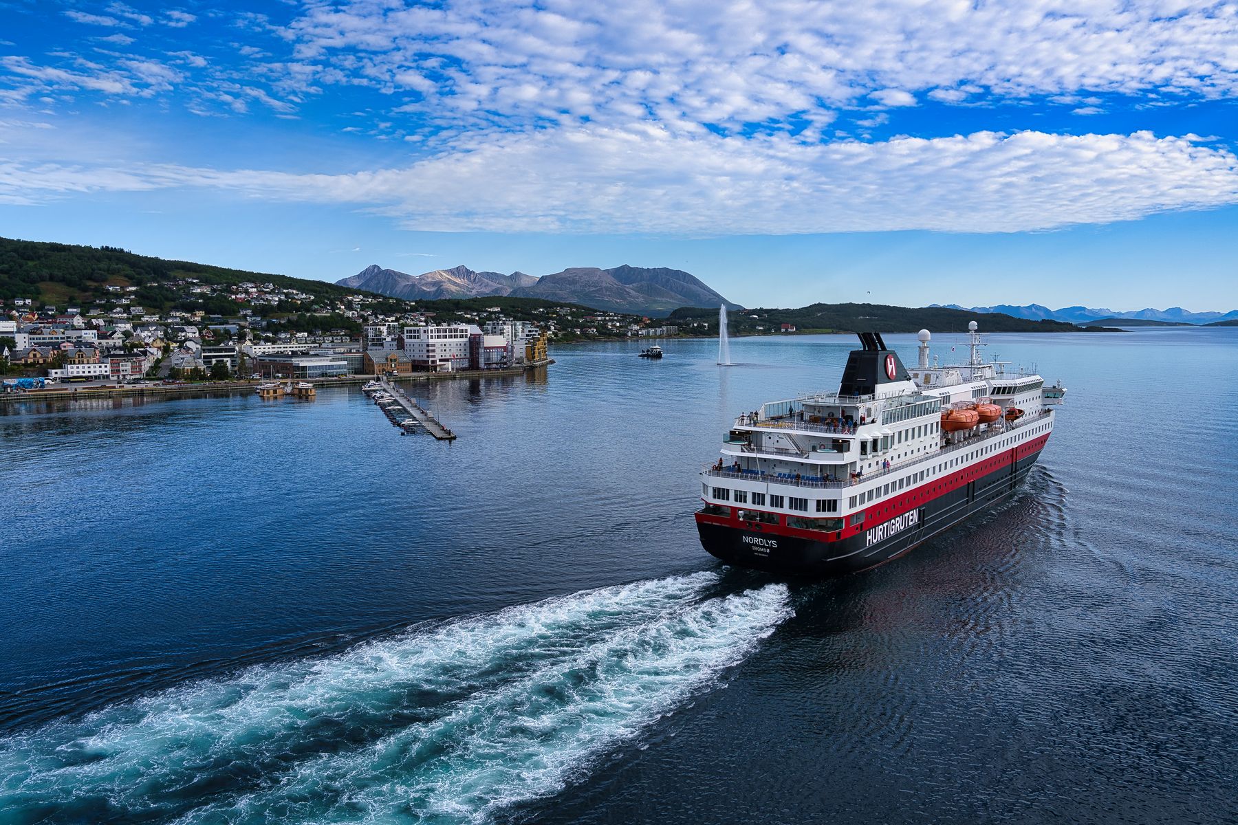 10.08.2023. Donnerstag Morgen. Es ist 8:30 Uhr. Bevor wir am Hurtigbåtkai anlegen können, muss die MS Nordlys erst einmal unseren Anlegeplatz freimachen. Um 9:00 Uhr liegt das Schiff fest und wir erklimmen die drei Decks für ein ruhiges Frühstück.