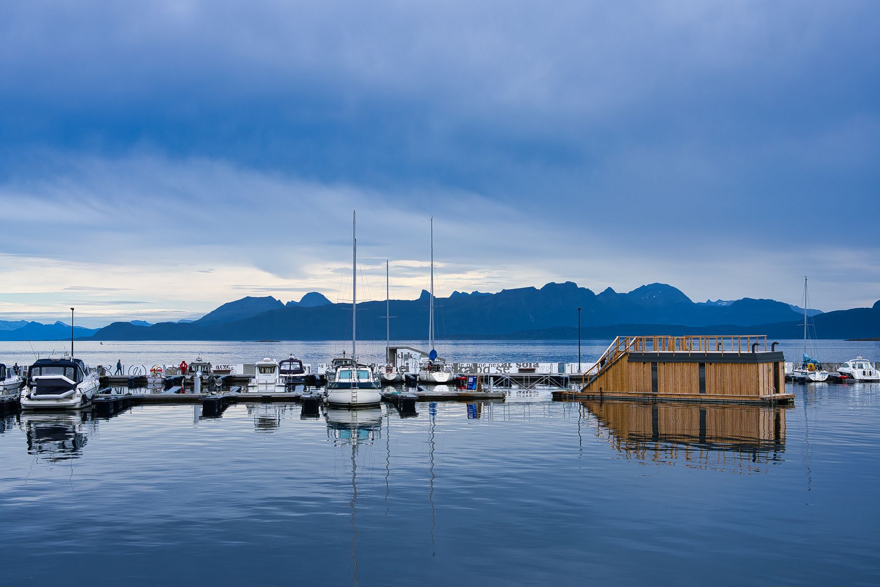 Während unseres Abendessens legen wir gegen 20:00 Uhr ab. Von unserem Balkon können wir noch einmal einen Blick zurück auf Harstad werfen. Wir sind das erste Mal in diesem Hafen gewesen, von dem ich mir ein wenig mehr erhofft hatte.