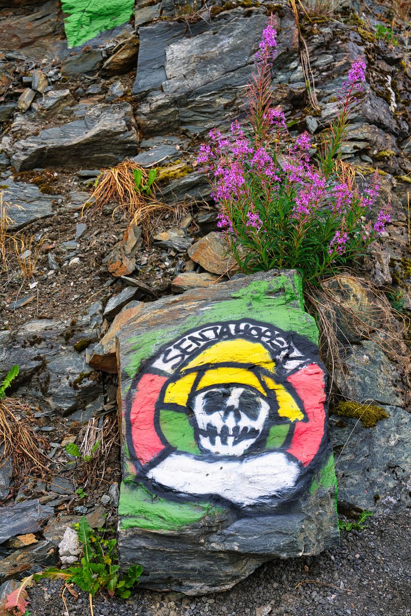 Wir folgen der Wasserlinie und entdecken einige Graffiti.