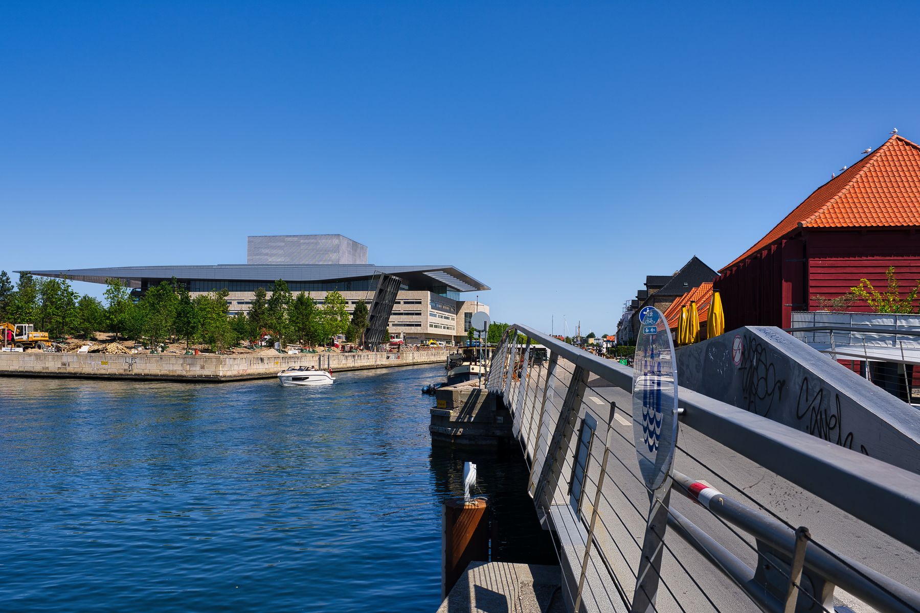 Von der Brücke haben wir eine schöne Aussicht auf das Schauspielhaus oder auf dänisch „det kongelige Teater“. Wie auch sonst. Links an der Ecke zum neuen Hafen liegt das rote Packhaus „71 Nyhavn“, ein stylisches, nicht ganz billiges Designerhotel.