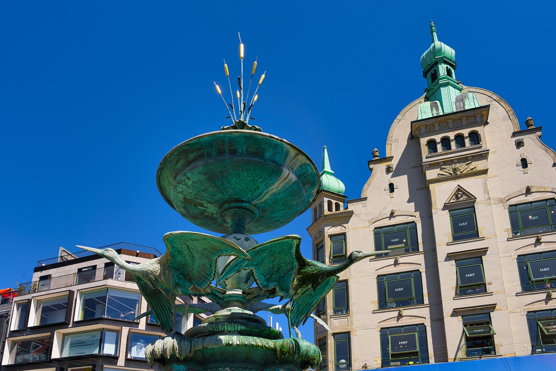 Auf dem Amagertorv steht der Storchenbrunnen oder dänisch der Storkesspringvandet, an dem einmal im Jahr die frisch examinierten Hebammen kostümiert und ausgelassen feiern.