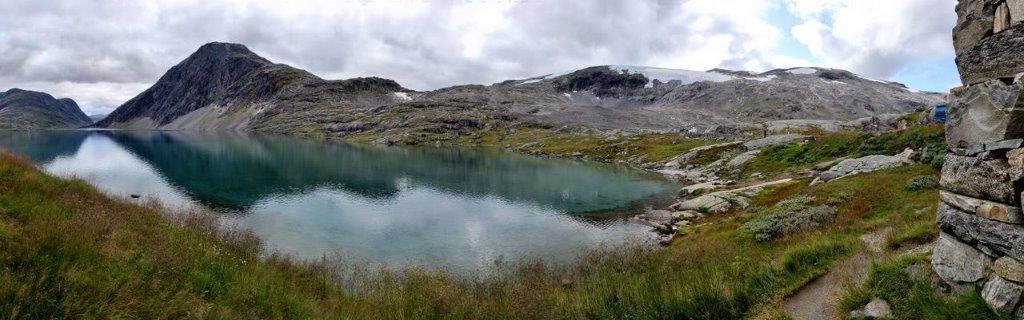 Der Djupvatn zog uns an. Im Hochgebirge auf ca. 1.030 m Höhe liegend. Fast 200 m tief; ins Deutsche übersetzt heißt er in etwa „tiefer See“. Kristallklares Wasser. Und eiskalt … Bei unserem Besuch frei von Eis – als wir vor Jahren im Juni an ihm vorbeigefahren waren, schwammen noch Eisstücke auf ihn herum.