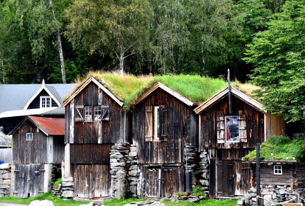aus roh behauenen Balken und Grasdächern sowie ein Beispiel von dem damaligen sozialen Wohnungsbau, wie er vor Jahrzehnten üblich war.