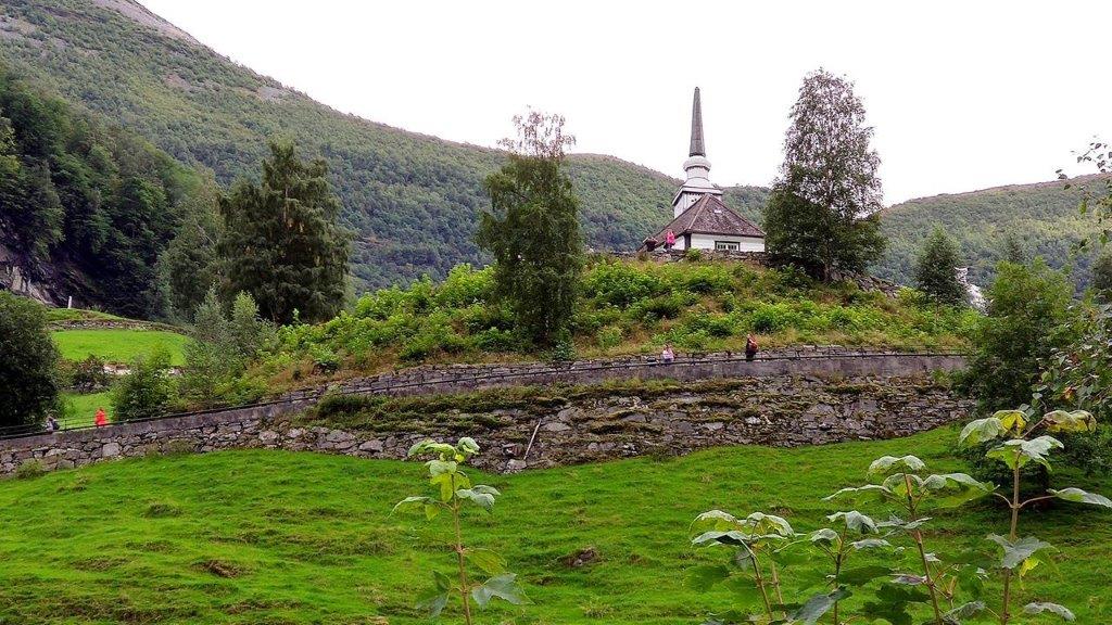 Unten angekommen hatten wir keine große Lust, uns sofort auf das Schiff tendern zu lassen. Was konnte man in dem an diesem Tag von den Gästen des schwimmenden Hochhauses überlaufenen Geiranger machen? Zunächst schlenderten wir durch den Ort. Den ohnehin mit Touristen überfüllten Andenkengeschäften würdigten wir keines Blickes. Sorry, doch – wir schauten hin und freuten uns, ein bisschen mehr Platz auf Straßen und Wegen zu haben. Auf den Hauptwegen tatsächlich nur ein bisschen mehr Platz – und so suchten wir ruhige und dafür enge Gassen und waren nicht dort, wo sich das Touristentreiben abspielte. Zum Glück, denn wir sahen alte restaurierte Hütten