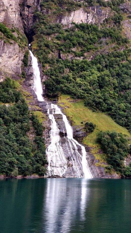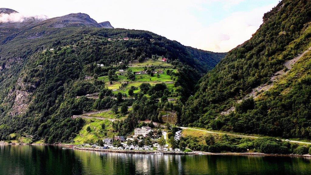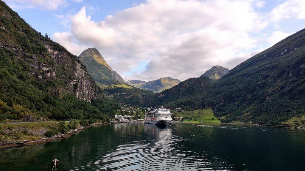 Das Fjordende, der Ort Geiranger, der Dalsnibba, Berge im Hintergrund mit Schneeresten oder auch kleinen Gletscherstücken, … Nur etwas störte, weil es sich ins Bild gefuscht hatte …