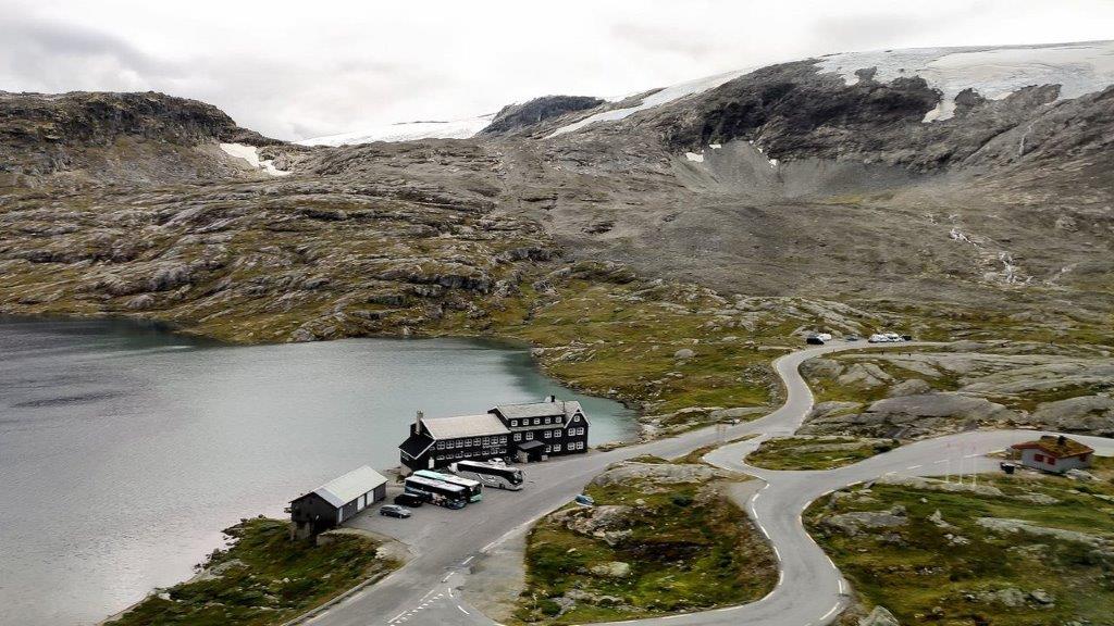 Und nur wenige Minuten später auf die Djupvasshytta, ein verkehrsgünstig und trotzdem idyllisch am Geirangervegen gelegenes Hotel, und die Mautstelle zum Dalsnibba.