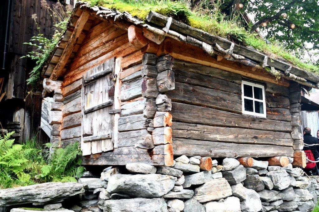 Unten angekommen hatten wir keine große Lust, uns sofort auf das Schiff tendern zu lassen. Was konnte man in dem an diesem Tag von den Gästen des schwimmenden Hochhauses überlaufenen Geiranger machen? Zunächst schlenderten wir durch den Ort. Den ohnehin mit Touristen überfüllten Andenkengeschäften würdigten wir keines Blickes. Sorry, doch – wir schauten hin und freuten uns, ein bisschen mehr Platz auf Straßen und Wegen zu haben. Auf den Hauptwegen tatsächlich nur ein bisschen mehr Platz – und so suchten wir ruhige und dafür enge Gassen und waren nicht dort, wo sich das Touristentreiben abspielte. Zum Glück, denn wir sahen alte restaurierte Hütten