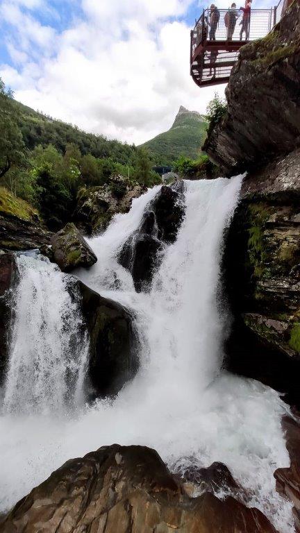 Der Wasserfall Storfossen, der immer wieder zum Verweilen einlud. Gut, dann standen wir ´mal im Weg … Kurz vor dem Ende des Wasserfallwegs hielten wir uns länger auf einer Aussichtsplattform auf.