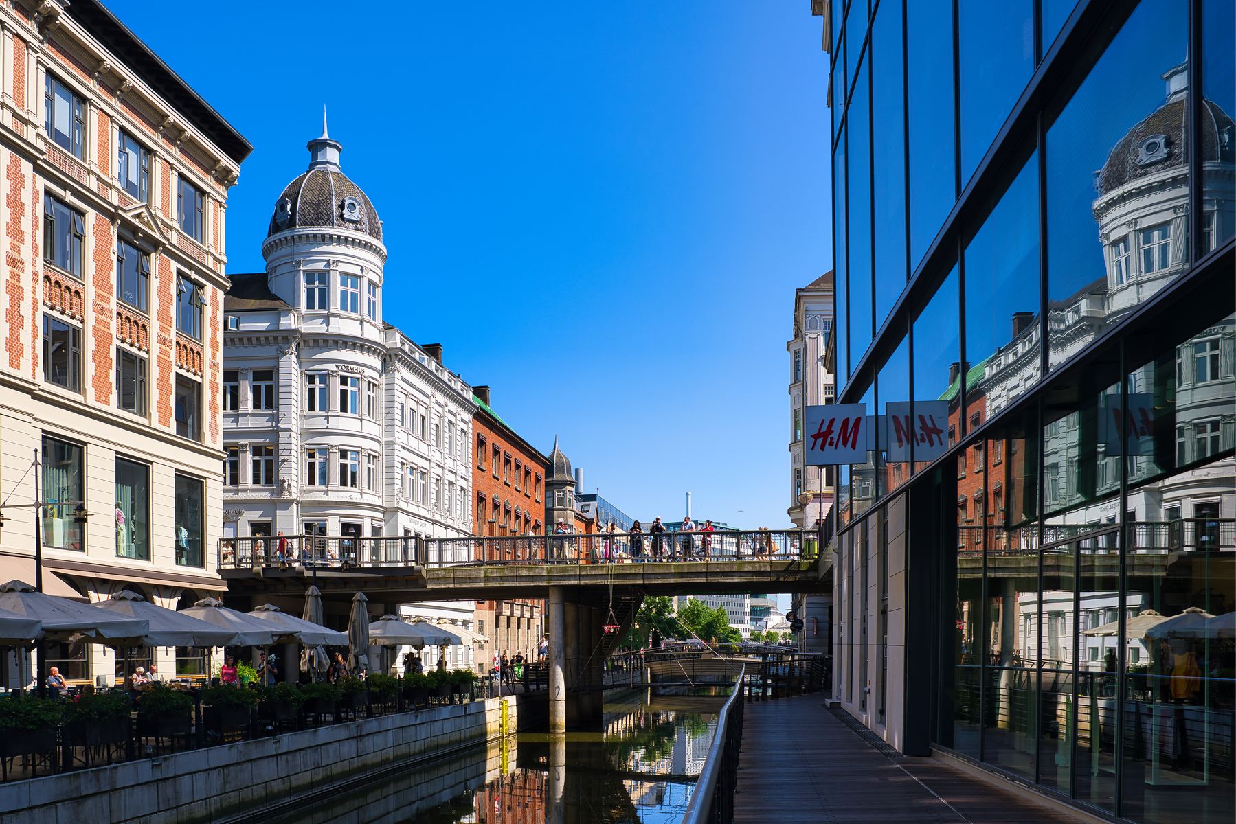 Kurz vor 14:00 Uhr verlassen wir das Schiff, um Aarhus zu Fuß zu erkunden. Dabei stellen wir fest, dass es hier einen Mix aus historischen und hypermodernen Gebäuden gibt.