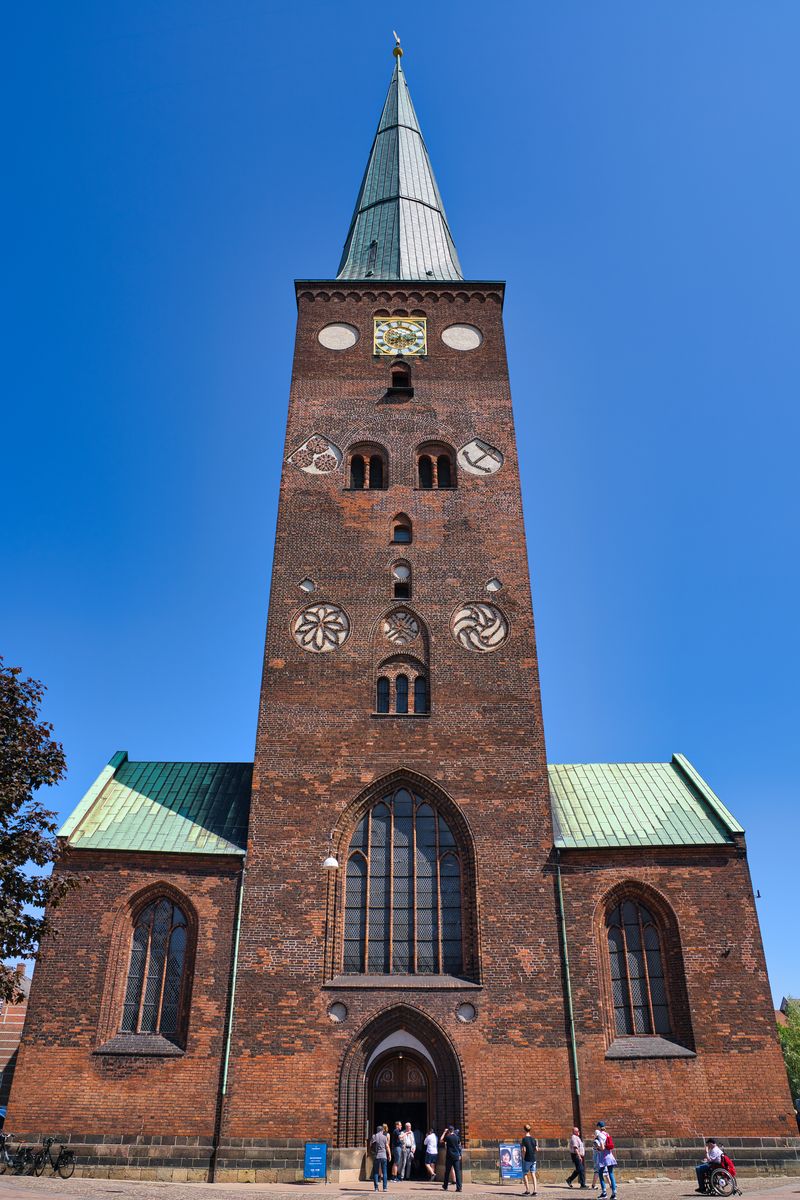 Das Wahrzeichen von Aarhus ist der Dom aus dem 12. Jahrhundert. Bei einem Blitzeinschlag im Jahr 1642 wurde dessen Kirchturm schwer beschädigt und erst 400 Jahre später repariert.