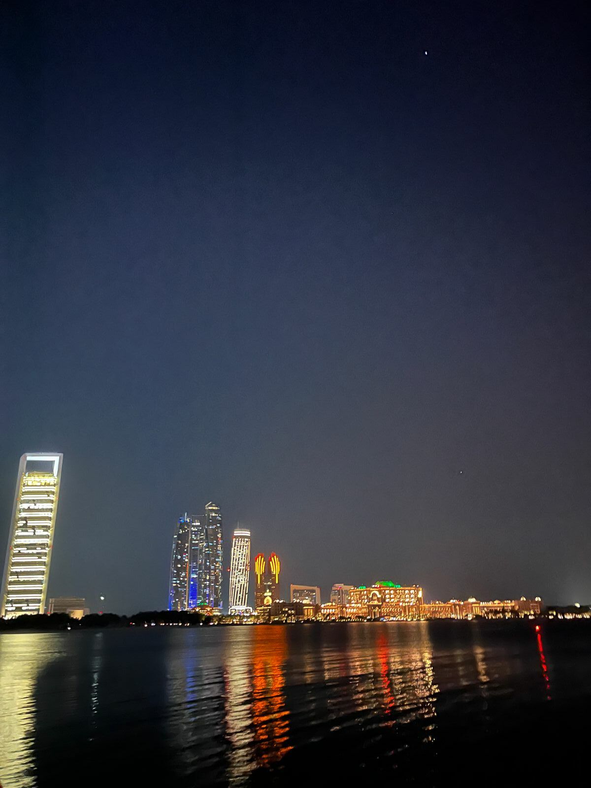Bei der anschließenden Fahrt durch das nächtliche Abu Dhabi fallen uns immer wieder die Augen zu.
