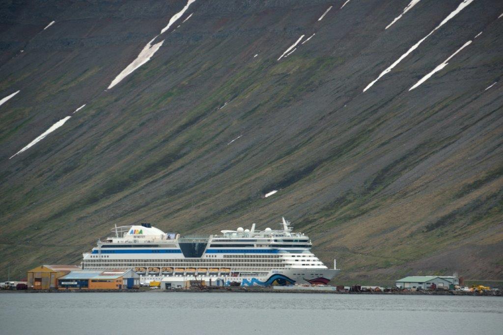 Bei bestem Wetter! Langsam entfernte sich die AIDAluna vom Kai, schwebte gefühlvoll rückwärts in den Fjord, drehte auf dem Handtuch und schob sich dann endgültig in den Ísafjarðardjúp (Die Aussprache habt Ihr sicher in der Zwischenzeit geübt …) – Richtung Nordmeer.