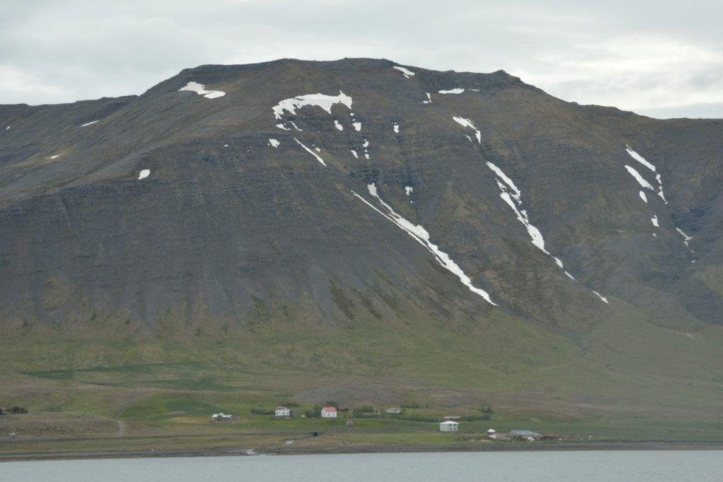 Nun aber zurück Richtung Ísafjörður. Vorbei an Fjorden. Vorbei an gigantischen, grün angehauchten steil aufragenden Gebirgsrücken. Kleine Häuser und Höfe. Wie Spielzeuge. Einsamkeit. Wie wir mit dieser Situation zurechtkommen würden?