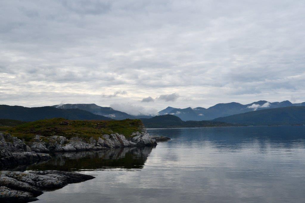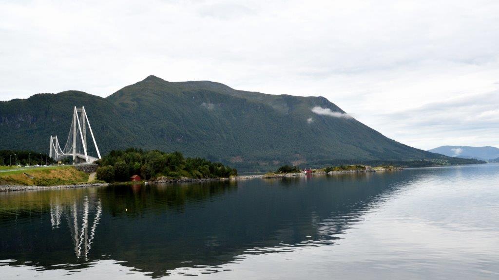 sahen wir den zur Schärenlandschaft passende Atlantikveien mit den unvermeidlichen Brücken. Leider mussten wir weiter. Weiter entlang am Kvernesfjord. Nunmehr auf der anderen Seite. Bis zu unserem nächsten geplanten Aufenthalt fast die ganze Zeit mit Blickkontakt zum Fjord.