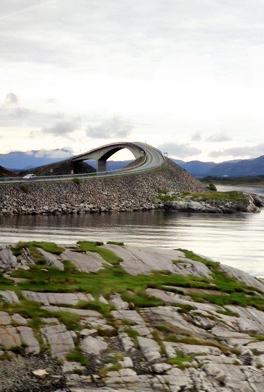 In der Nähe der Storseisund-Brücke, die größte der Atlantikstraßenbrücken. 260 m lang und 23 m hoch. Je nach Perspektive ergeben sich unübliche Ausblicke:
