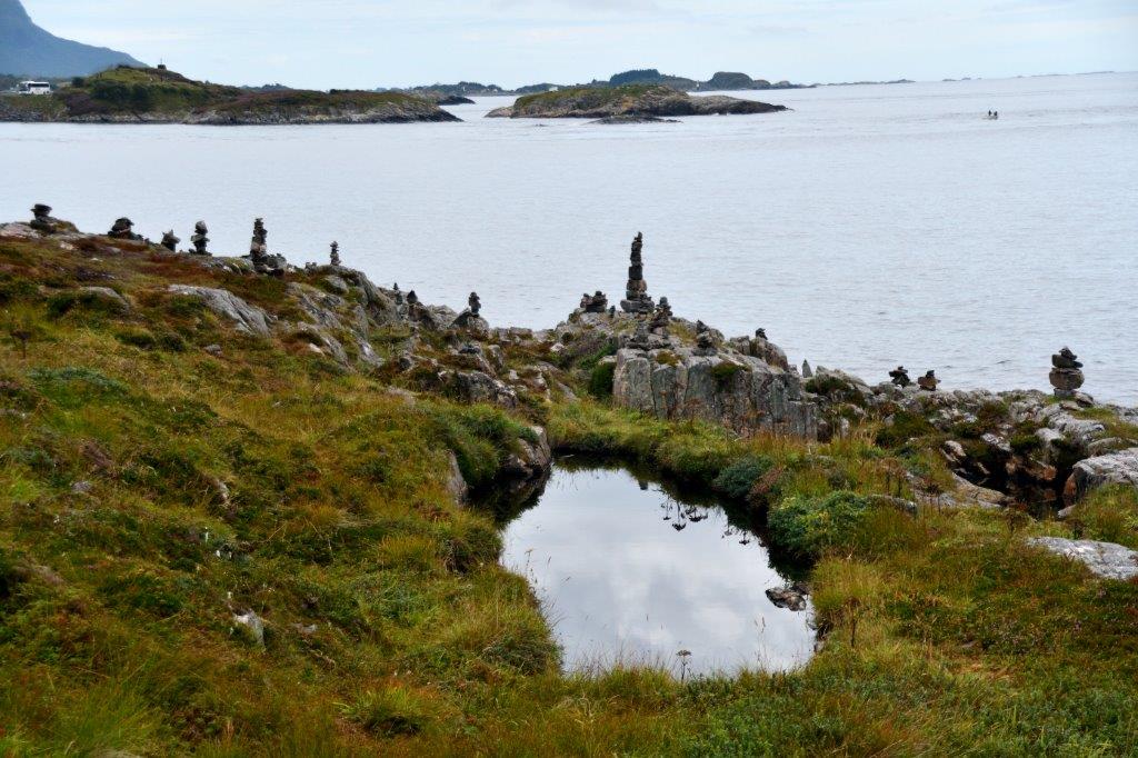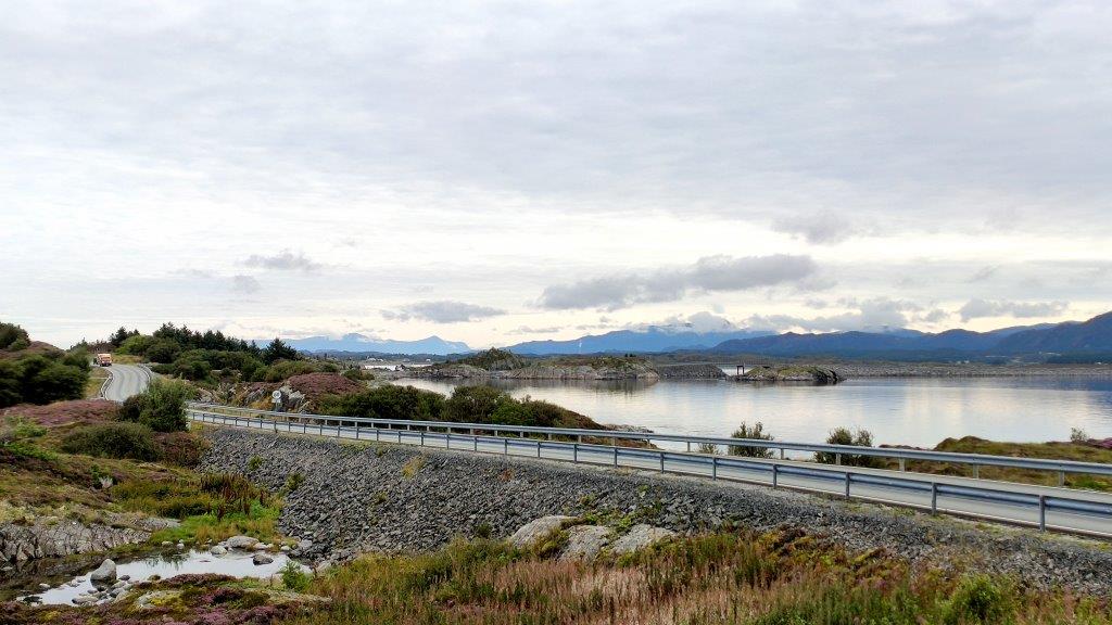 Was zeichnet die Atlantikstraße aus? Auch wenn man in einem Fahrzeug sitzt, fesseln die Ausblicke über das Meer, die Fjorde, die Schären. Der immerwährende Kontakt zum Meer. Die sich fortwährend schlängenden Straßen und Brücken. Die Natur. Und wir waren „mittendrin“. Und hielten endlich an, um in Ruhe alles genießen zu können.