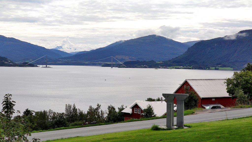 Von beiden Kirchen aus hatten wir einen großartigen Blick über den Kvernesfjord und auf die Gjemnessundbrua, die wir auf dem Hinweg überquert hatten.