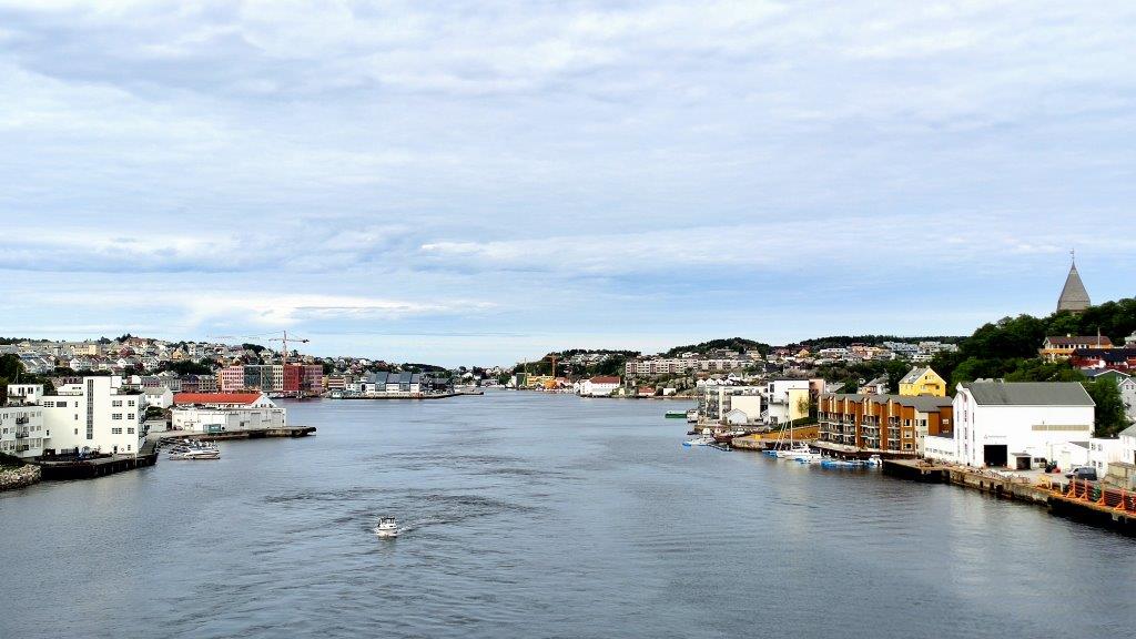Am Hügel der Insel Kirkelandet präsentierte sich die trutzige Nordlandet Kirche; auf der Insel Kirkelandet waren die Spitzen der hochmodernen Kirkelandet Kirche zu erkennen. Im Hafen herrschte reger Schiffsverkehr – ein Kommen und Gehen. Zwischen den i.W. Frachtschiffen huschten Fähren zwischen den Inseln hin und her. Der übliche und praktische öffentliche Personennahverkehr im Land der vielen Inseln.