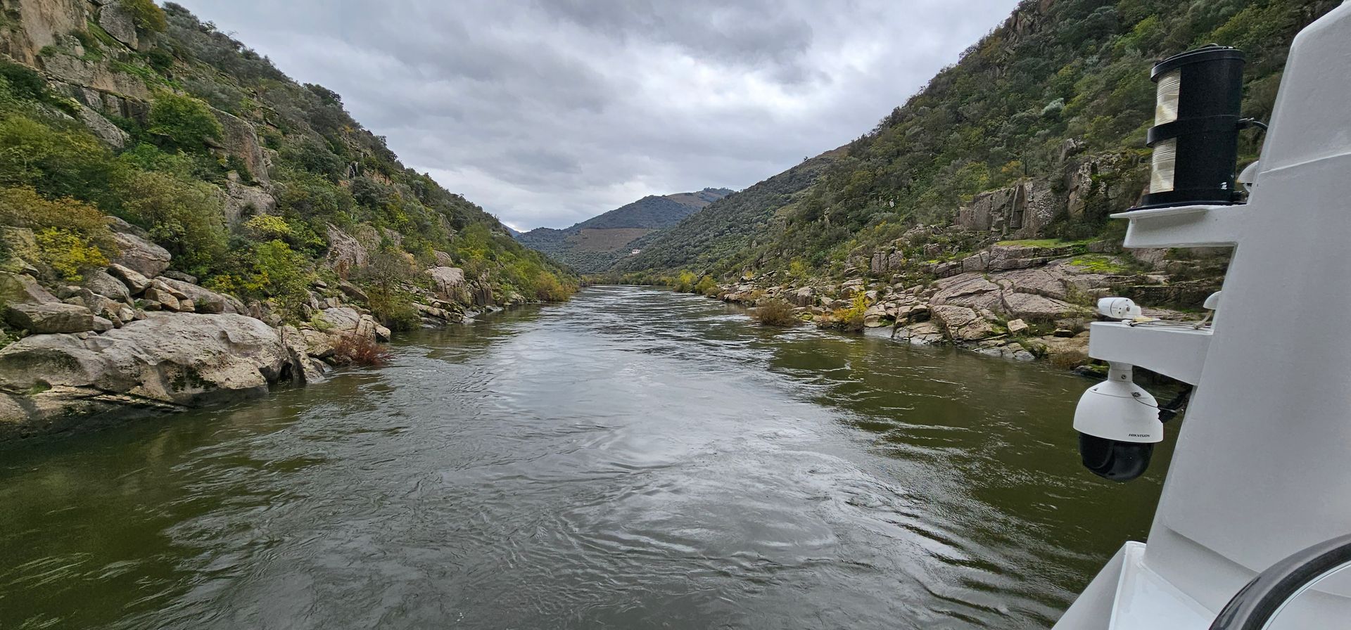 Der engsten Stelle auf dem befahrbaren Teil des Douro. Auch hier wurde das Sonnendeck wieder gesperrt und wer sich frühzeitig auf dem Vordeck einfand hatte oberhalb der Schleuse einen grandiosen Blick.