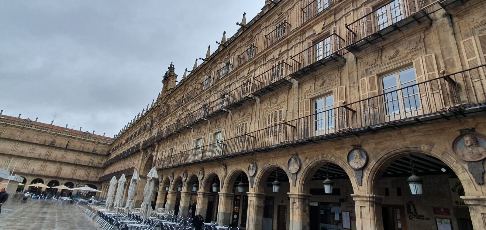 Wie immer nahmen wir den Bus von Paula und so ging es nur Minuten später über die Landesgrenze und völlig safe in 2 Stunden nach Salamanca wo wir zuerst einen Busparkplatz anfuhren um von dort zu Fuß in 5 Minuten zum Hotel Palacio de San Esteban zu laufen.