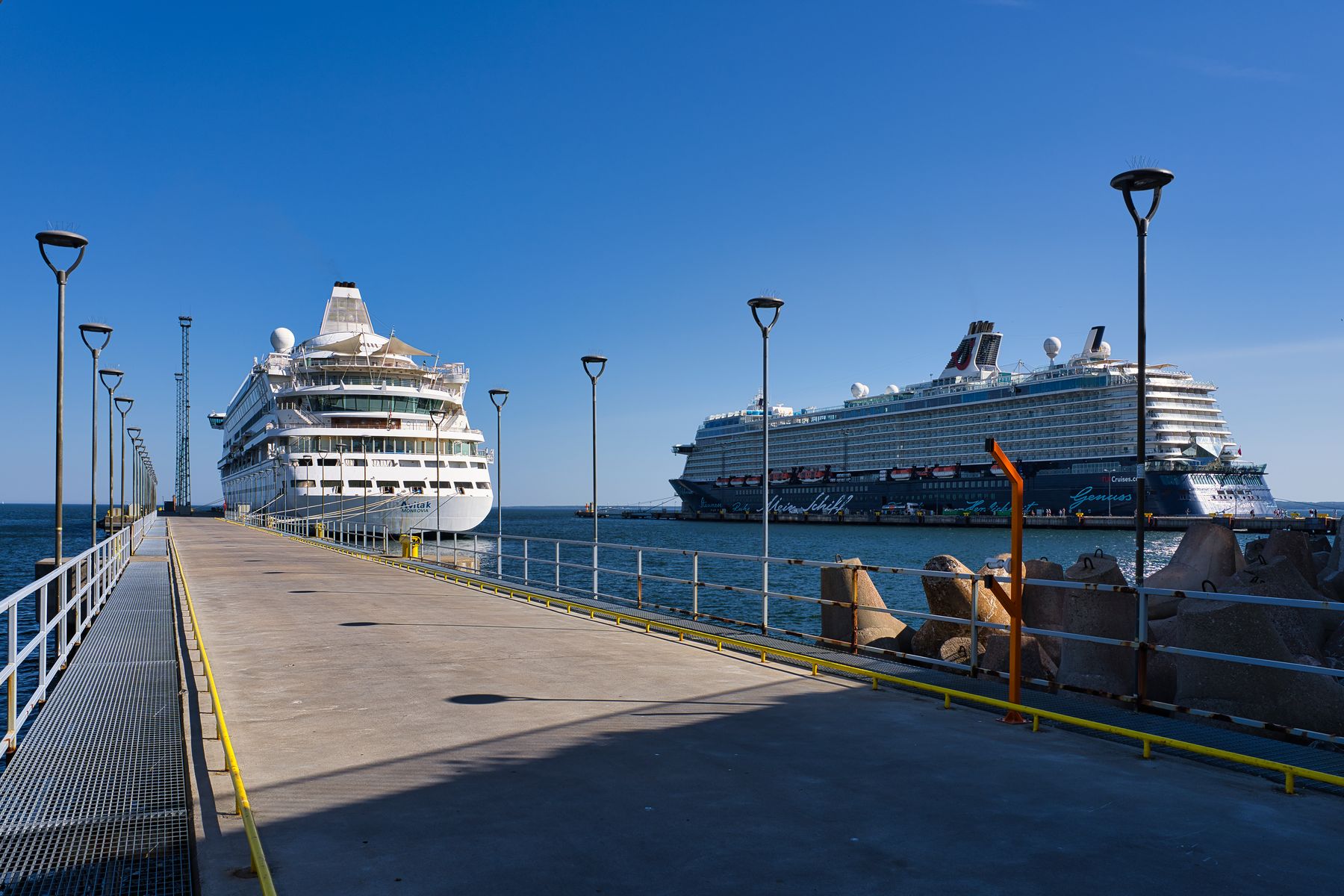 Das nächste Bild könnte auch „gestern & heute“ heißen. 2017 und 2018 waren wir jeweils zweimal mit der Vita und 2019 zweimal mit ihrer ein Jahr jüngeren Schwester, der Aura, unterwegs. Viele lustige Abende haben wir mit Gleichgesinnten an der Ocean Bar erlebt. Leider hat dann Corona, aber auch die neue strategische Ausrichtung von AIDA hin zum Massenmarkt, das Ende der beiden kleinen Schiffe besiegelt. Sie werden uns fehlen und mit ihnen auch die uns angenehme Schiffsklasse. Wahrscheinlich sind wir und diejenigen, die so empfinden wie wir, eine aussterbende Spezies und ein so kleiner Markt, dass es sich für die Reedereien nicht mehr lohnt, unsere Wünsche zu bedienen. Mit dem preissensiblen Klientel lässt sich wohl in Masse mehr Geld verdienen.