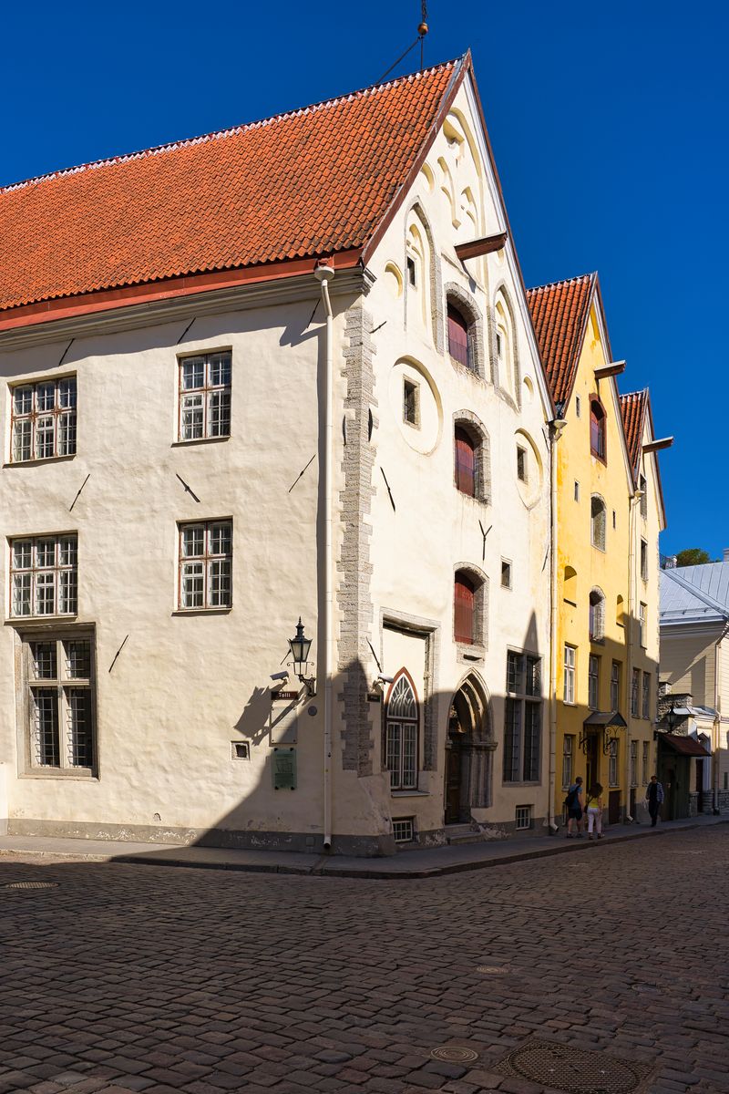 Nachdem wir die Pforte durchschritten haben, sind wir auf der Pikk, die auf deutsch Langstraße heißt und auch wirklich lang ist und als eine der ältesten Straßen aus dem 14. Jahrhundert quer durch die Altstadt von Reval, wie Tallinn auch schon hieß, bis zum Domberg führt. Entlang der Langstraße wurden historische Kaufmannshäuser, wie z.B. die „Drei Schwestern“, und Gildehäuser und das Schwarzhäupterhaus errichtet.