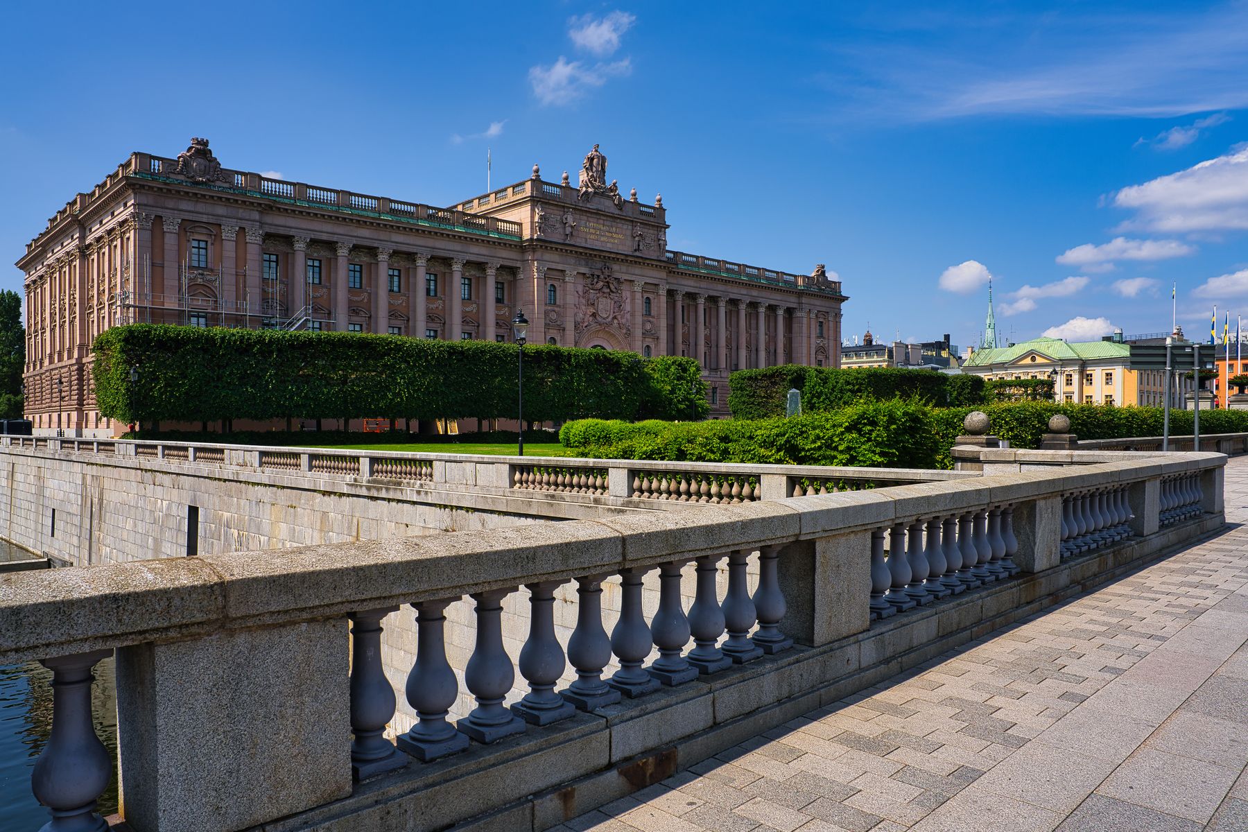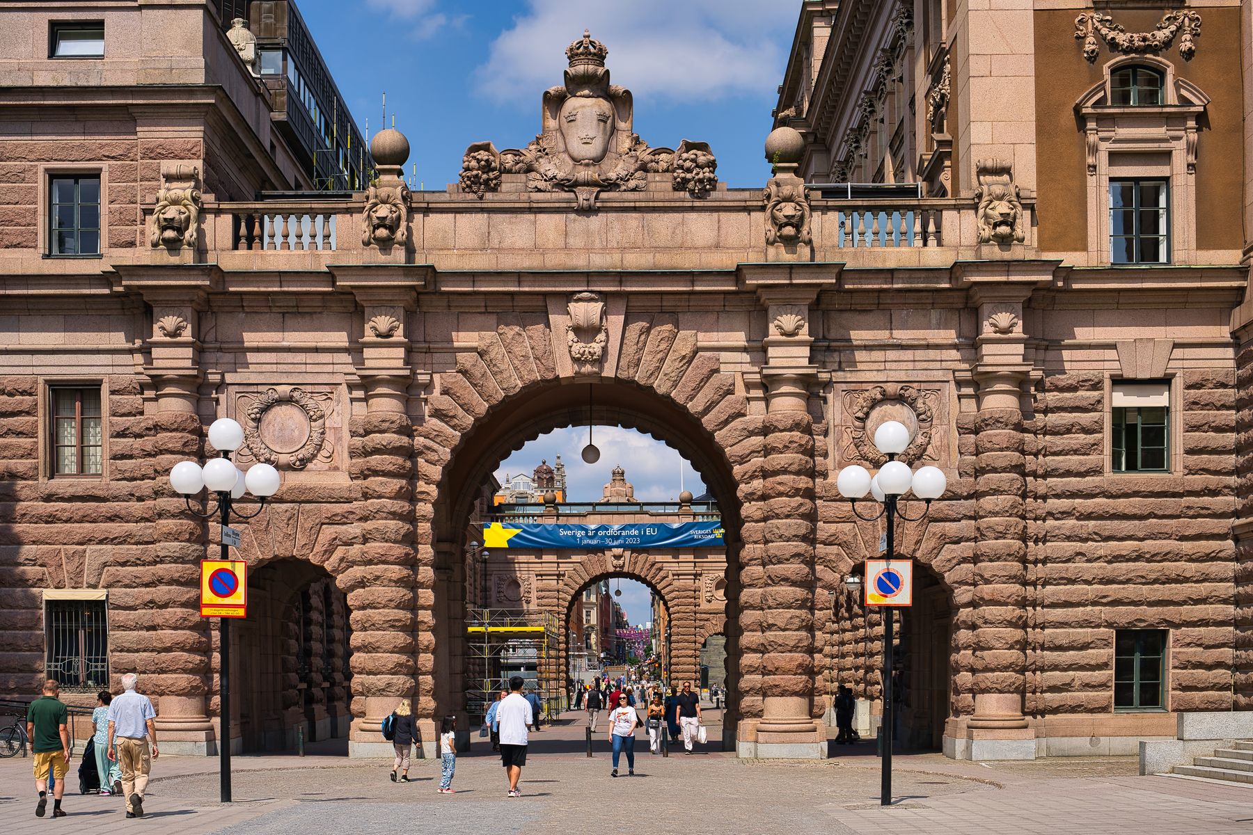 Auf der kleinen Insel Helgeandsholmen befindet sich das „Riksdagshuset“, in dem das schwedische Parlament tagt.