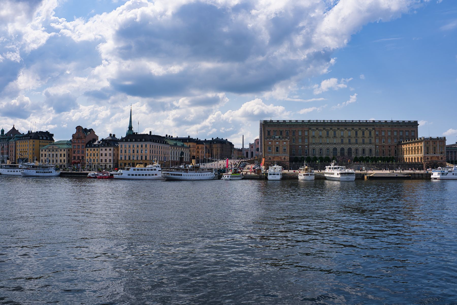 Schon während des Frühstücks wecken Schiffe meine Neugierde, die im Pendelverkehr unterwegs sind und stark nach Fähren aussehen. So orientieren wir uns nach Verlassen des Schiffes erst einmal in Richtung der Spitze des Terminals, wo wir einen Haltepunkt der Fähre vermuten. Und richtig spekuliert. Hier legt alle halbe Stunde die Fähre 80 an und auch wieder ab und zwar zum Nybroplan in Schlossnähe. Das ist für uns Shuttlemuffel genau das Richtige, zumal wir wieder mal Kaiserwetter haben. Zu unserer Verwunderung steigen mit uns nur ein paar Mitreisende an Bord, so dass wir einen schönen Sitzplatz finden. Bezahlt wird mit der Kreditkarte. Kurz vor den Scanner gehalten, dann leuchtet es grün und unsere Kreditkarte ist unsere Fahrkarte. Gut, dass meine Frau ihre eigene Karte dabei hat. Da die SL-Fähre zum ÖPNV gehört, kostet die einstündige Fahrt nur wenige Kronen.