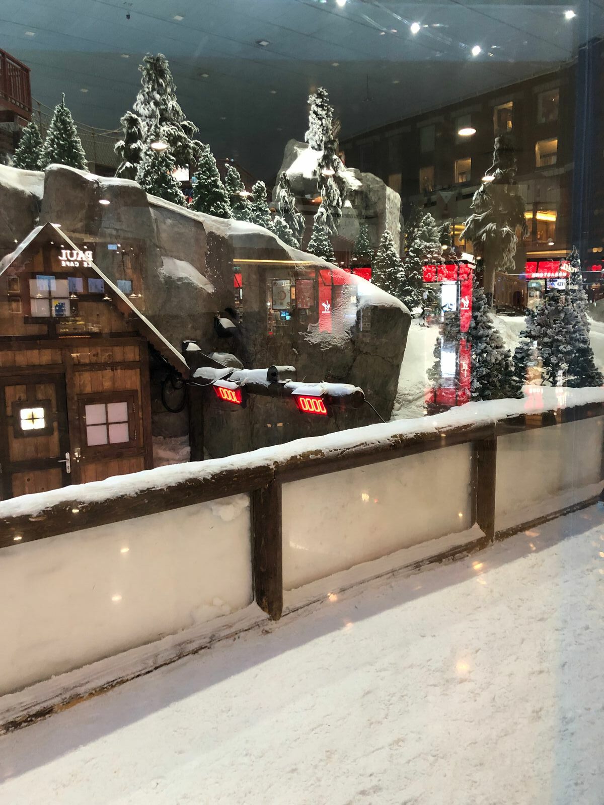 Wir staunen, überlegen kurz die Skihalle zu besichtigen, entscheiden uns dann aber doch dagegen. Zu teuer und vor allem zu kalt. So staunen wir nun eben durch die Scheiben.