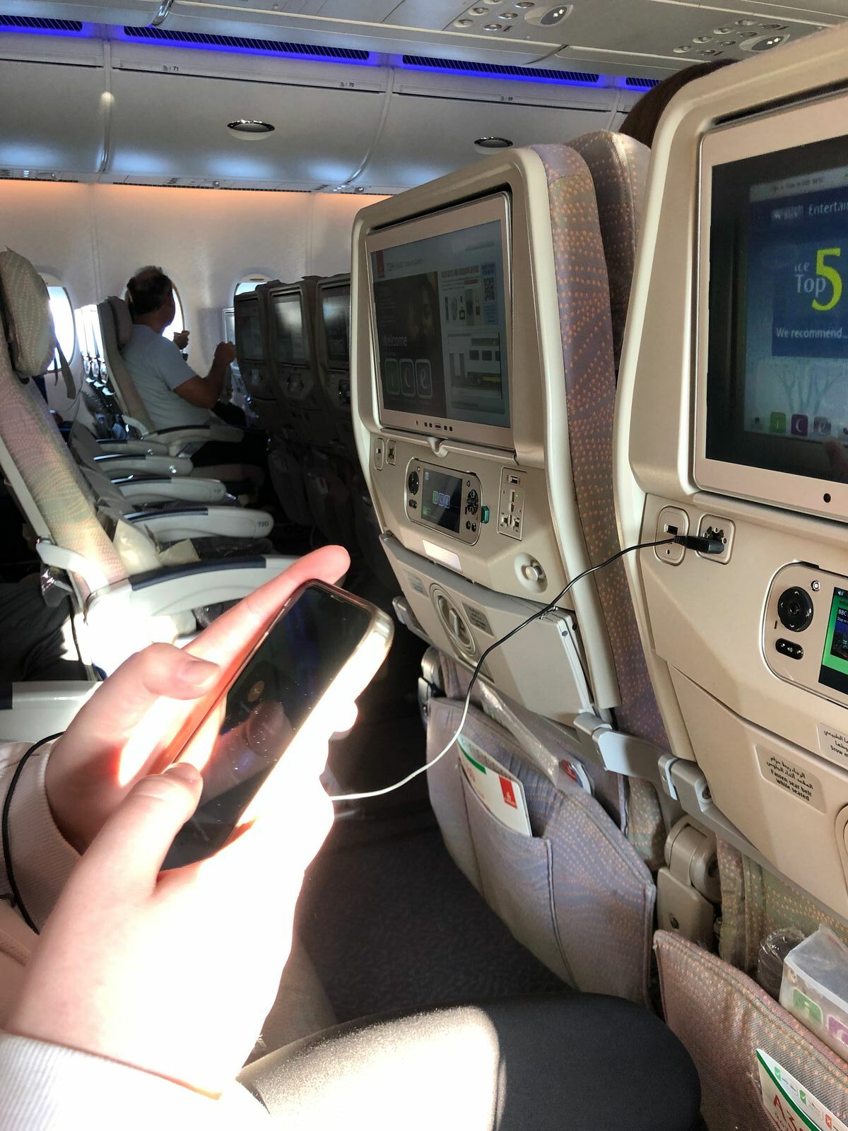 Der A 380, der uns zurück in den Winter bringt, ist nicht ausgebucht und so haben wir einen ausgesprochen angenehmen Rückflug mit viel Platz.
