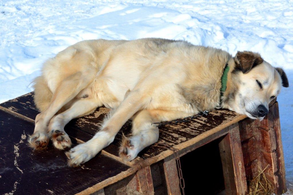 Der als letzter abgebildete Husky erhielt Gnadenbrot; er war zu alt, um mit den jungen Hunden beim Schlittenziehen mitzuhalten. Die Mehrzahl der Huskies hatte nichts dagegen, wenn wir auf sie zukamen und sie streichelten. Die Tiere waren richtig wild auf freundlichen Zuspruch und Zuneigung. Nur wenige Viecher waren ängstlich und zogen sich bei Annäherung zurück.