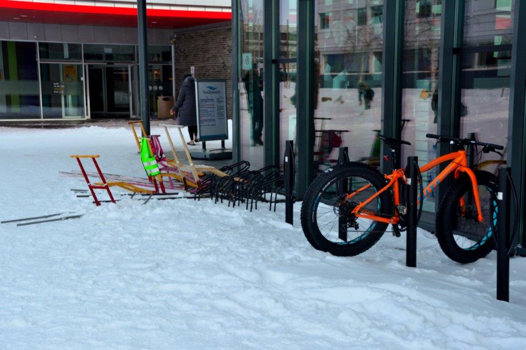 Nun aber langsam zurück zum Schiff. Unterwegs erkannten wir, dass die Einheimischen nicht nur mit dem Fahrrad sondern auch mit Schlitten ihren Weg in die Stadt fanden.