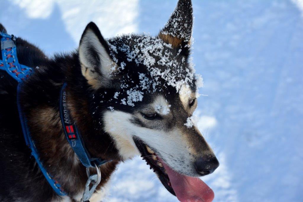 wie sich andere Wesen mit uns abmühten – wir fuhren durch eine weitgehend unberührte Natur. Schneefelder, Wälder und weiße Berge. Zu schnell tauchte vor uns die Lodge auf. Wir quälten uns aus dem Schlitten (alte Leute!) und bedankten uns bei den Huskies. Sie waren überhaupt nicht scheu und freuten sich, als wir uns mit ihnen beschäftigten.