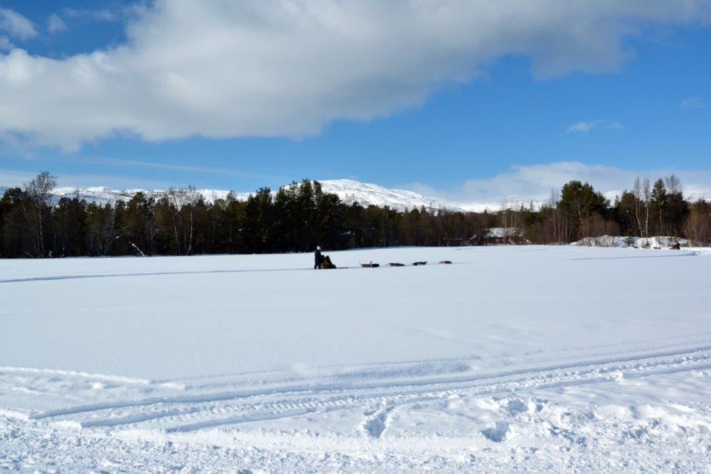 wie sich andere Wesen mit uns abmühten – wir fuhren durch eine weitgehend unberührte Natur. Schneefelder, Wälder und weiße Berge. Zu schnell tauchte vor uns die Lodge auf. Wir quälten uns aus dem Schlitten (alte Leute!) und bedankten uns bei den Huskies. Sie waren überhaupt nicht scheu und freuten sich, als wir uns mit ihnen beschäftigten.