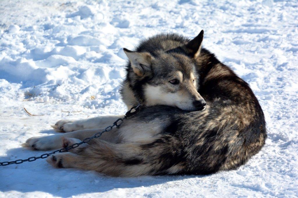 Der als letzter abgebildete Husky erhielt Gnadenbrot; er war zu alt, um mit den jungen Hunden beim Schlittenziehen mitzuhalten. Die Mehrzahl der Huskies hatte nichts dagegen, wenn wir auf sie zukamen und sie streichelten. Die Tiere waren richtig wild auf freundlichen Zuspruch und Zuneigung. Nur wenige Viecher waren ängstlich und zogen sich bei Annäherung zurück.