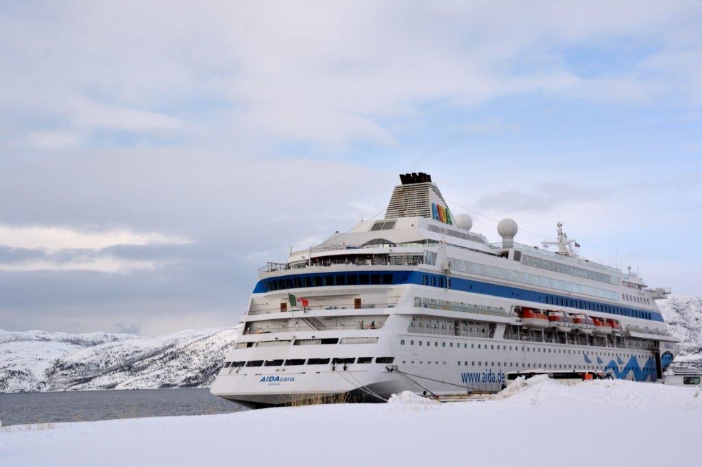 Wie immer waren die Fünf Freunde pünktlich auf dem Schiff. Pünktlich zum Kaffee. Pünktlich zum Kuchen. Und auch einige von uns pünktlich nach Schließen des Calypso an Land. Wir trieben uns noch ein wenig um die Anlegestelle herum. Die AIDAcara schaffte es nicht, sich hinter dem Schneehügel zu verstecken.