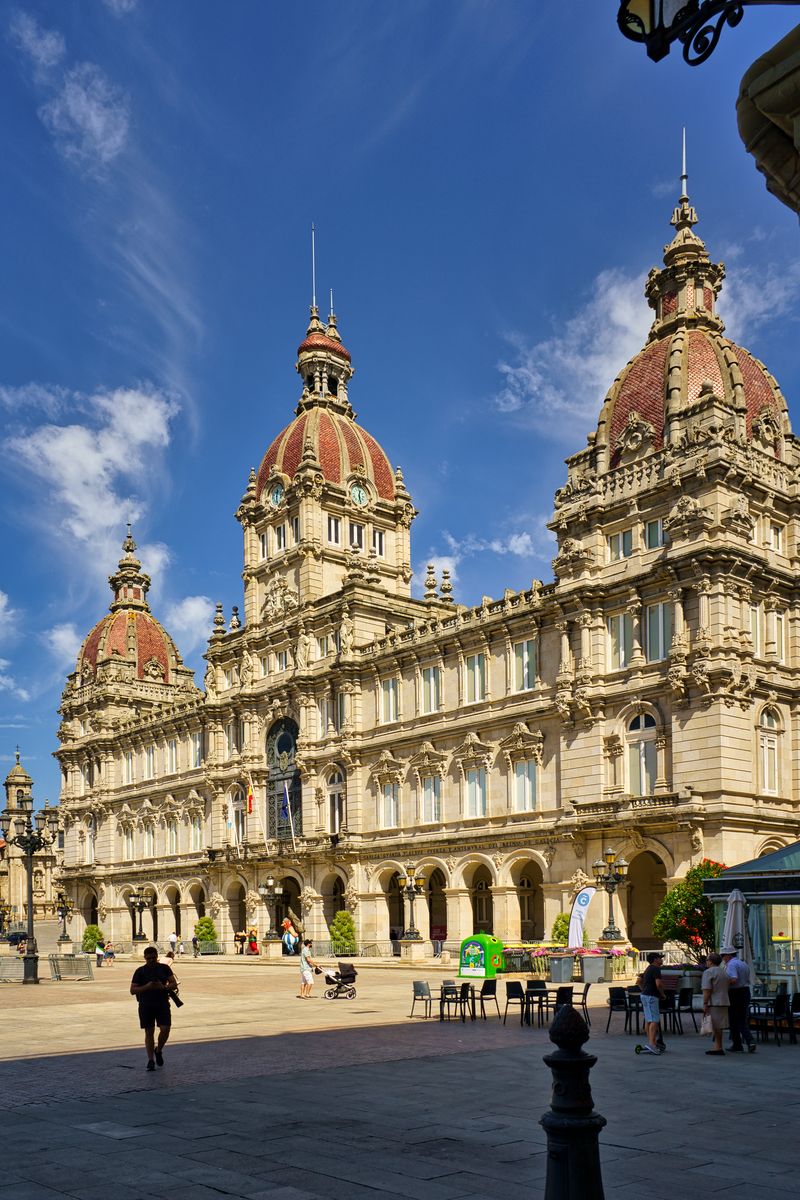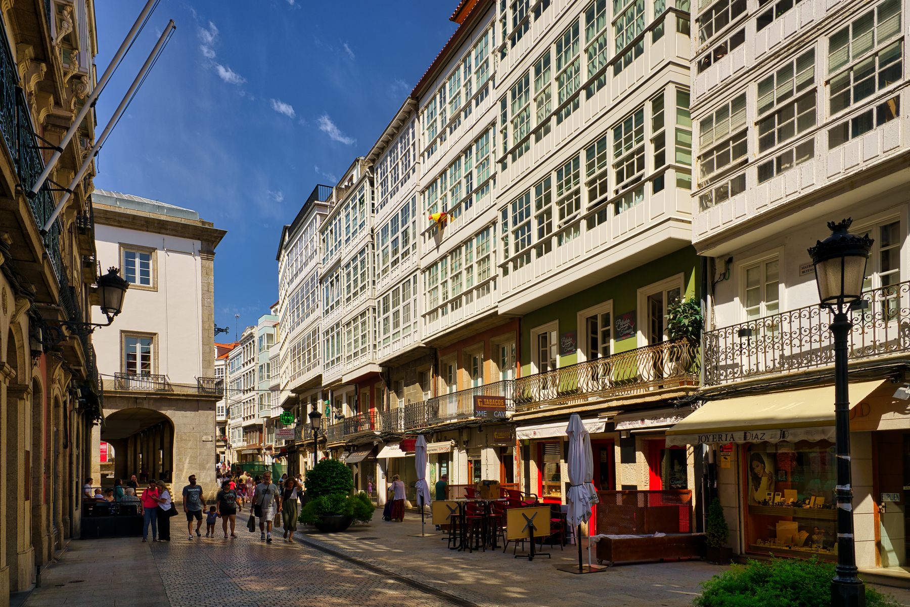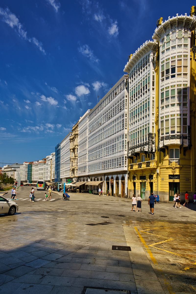 An Avenida Marina mit ihren vielen Balkons kann man gut erkennen, warum A Coruña die gläserne Stadt genannt wird.