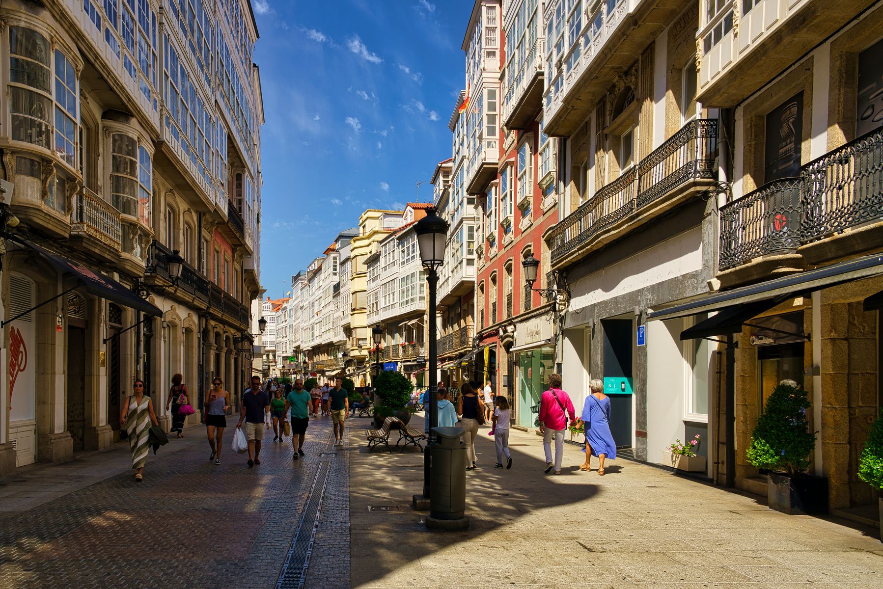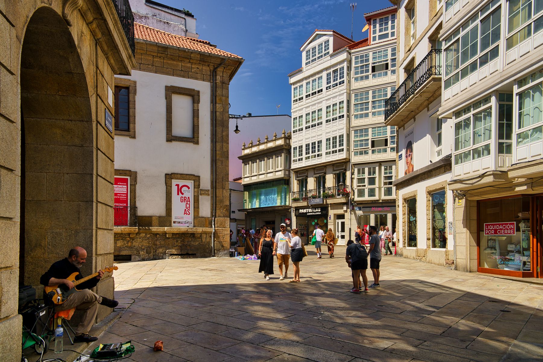 In der Fußgängerzone der Rúa Real finden wir auch wieder ein wenig Schatten.