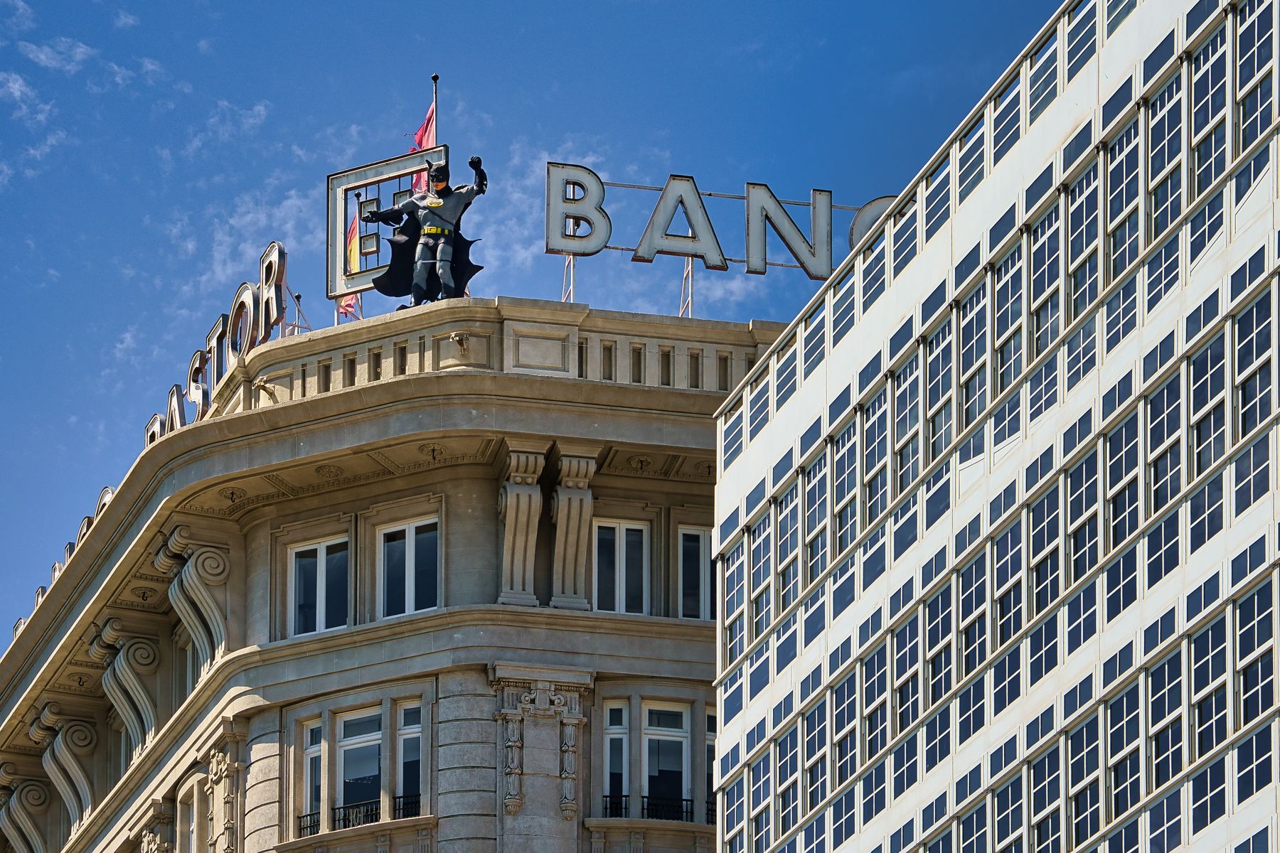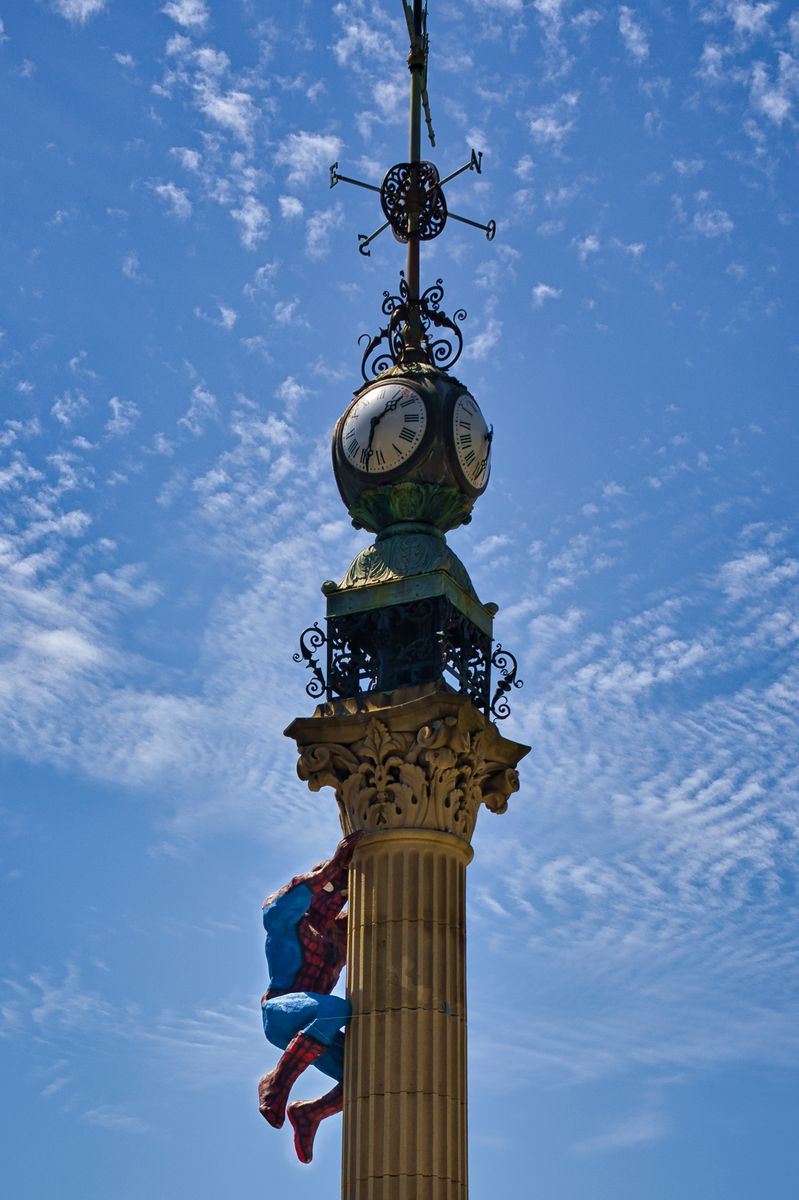 Am „Obelisco“ klettert Superman und auf dem Dach der angrenzenden Bank sehen wir Batman. Schon am Rathaus haben Asterix und Obelix den Eingang bewacht.
