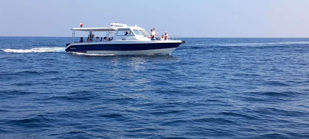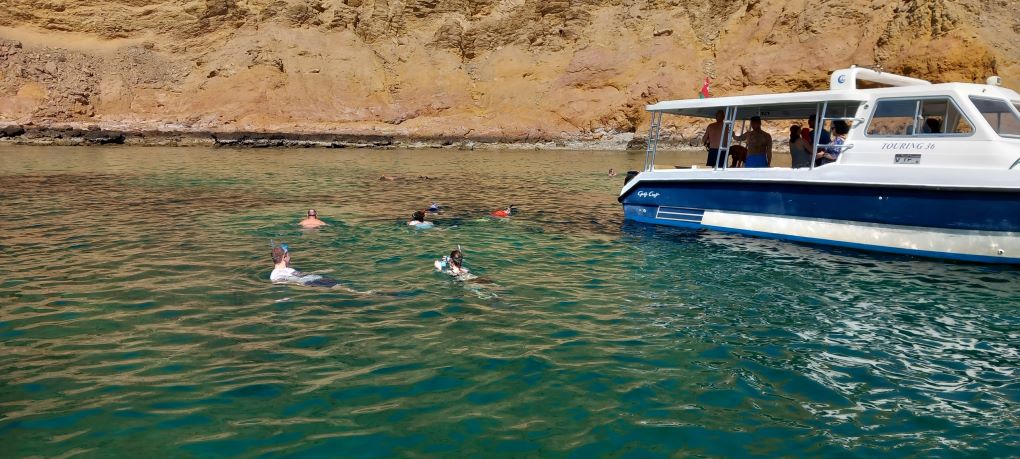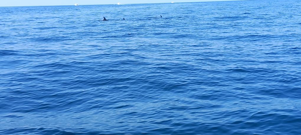 Heute haben wir einen Bootsausflug "Delfinbeobachtung und Schnorchelabenteuer" gebucht. Um 10 Uhr pünktlich mit dem Bus los bis zu einem Yachthafen, dort stiegen wir in ein Motorboot mit ca. 20 anderen Teilnehmern um. Raus aufs Meer zur "Delphinjagd". Naja, wir sahen immerhin 400% (4) mehr Delphine als bei einem ähnlichen Ausflug im April.