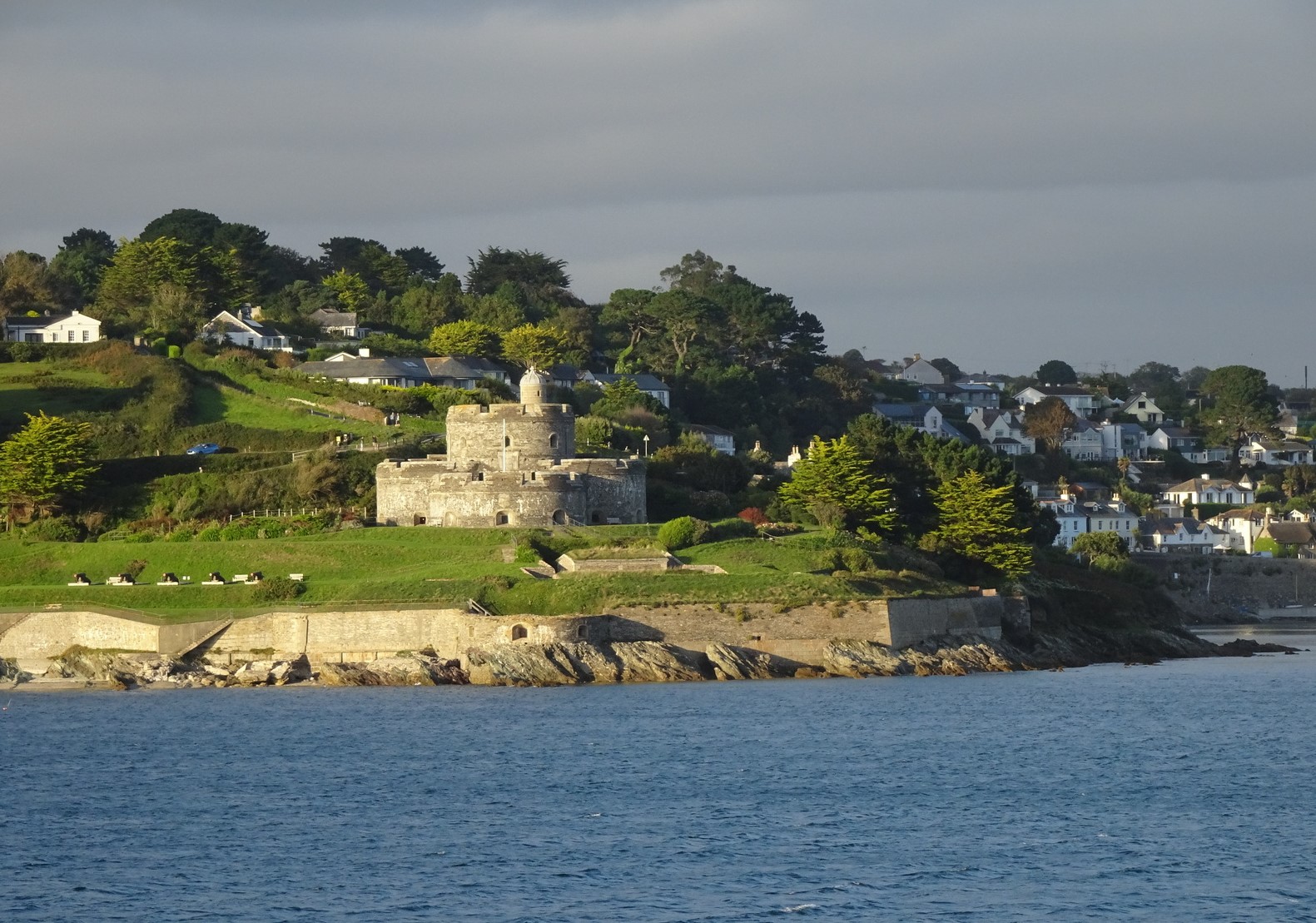 Das Gegenstück an der anderen Seite der Bucht, St. Mawes Castle, ist wesentlich kleiner und macht bei unserer Ausfahrt gerade im schrägen Sonnenlicht auf sich aufmerksam,