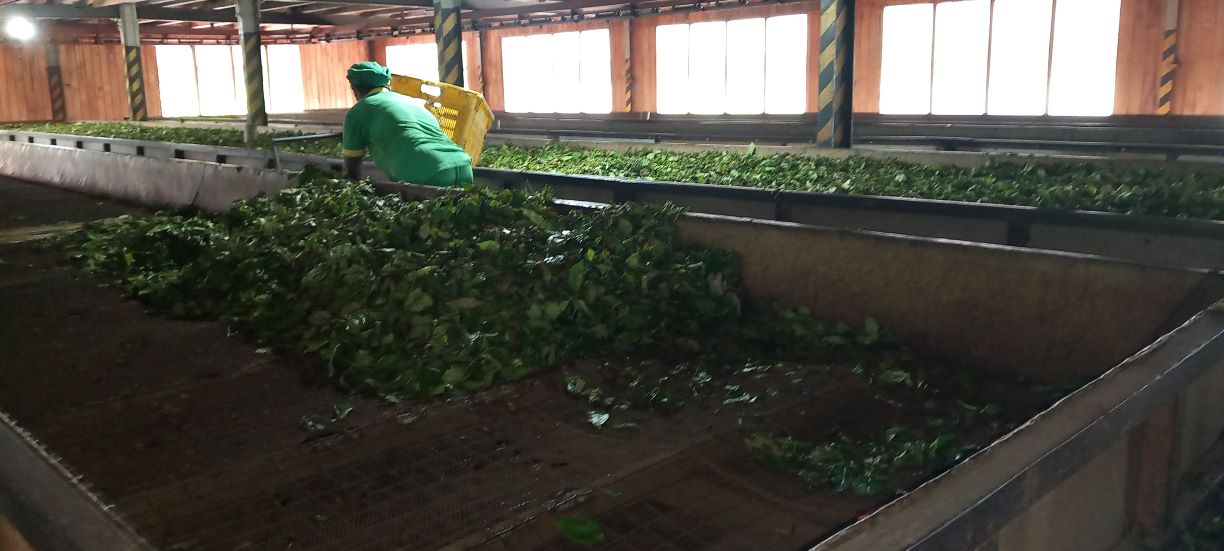 Trocknung der Teeblätter bevor sie zur Weiterverarbeitung in die Rösterei kommen