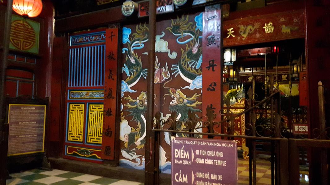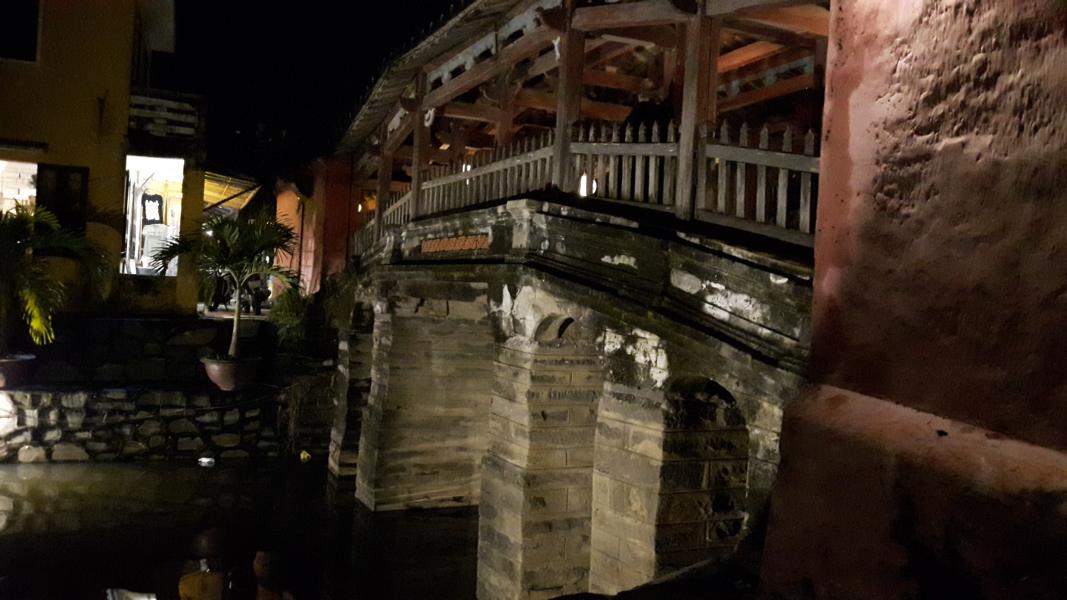 Unser Reiseleiter wartet, man braucht ein Ticket für die Besichtigung. (Beim Kauf eines Tickets kann man 5 verschiedene Sehenswürdigkeiten besuchen) Die Brücke schaut auf eine lange Geschichte zurück. 1593 begann der Bau durch die Japaner und mit der Brücke waren dann das chinesische Viertel mit dem japanischen verbunden. Sie wurde irgendwann zerstört, wieder aufgebaut und die, die wir heute sehen, stammt aus dem Jahr 1763. Das Bauwerk trägt den Namen Chua Cau - „Brücke aus der Ferne“.