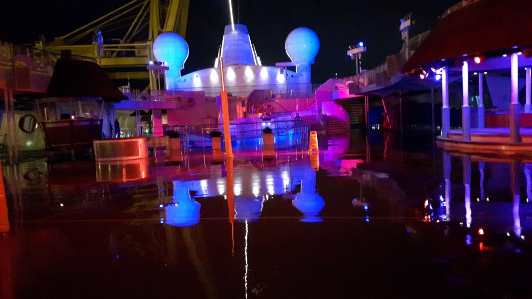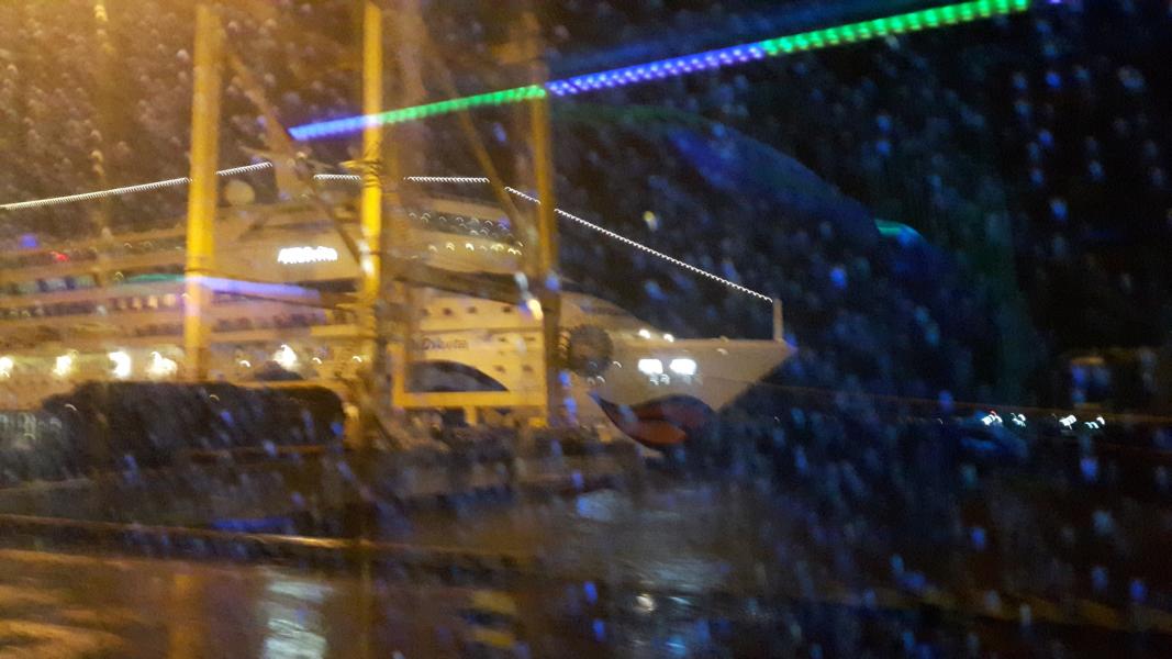 Auf dem Pooldeck ist es ruhig als wir gegen halb elf wieder eintrudeln. Ist ja kein Wunder, es regnet und wer mag schon gerne bei Regen hier herum stehen?