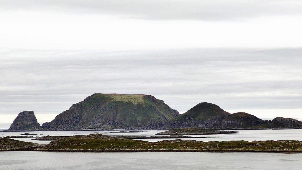 Hinter Gjesvær erhob sich die Vogelinselgruppe und das Naturschutzgebiet Gjesværstappan aus dem Meer,